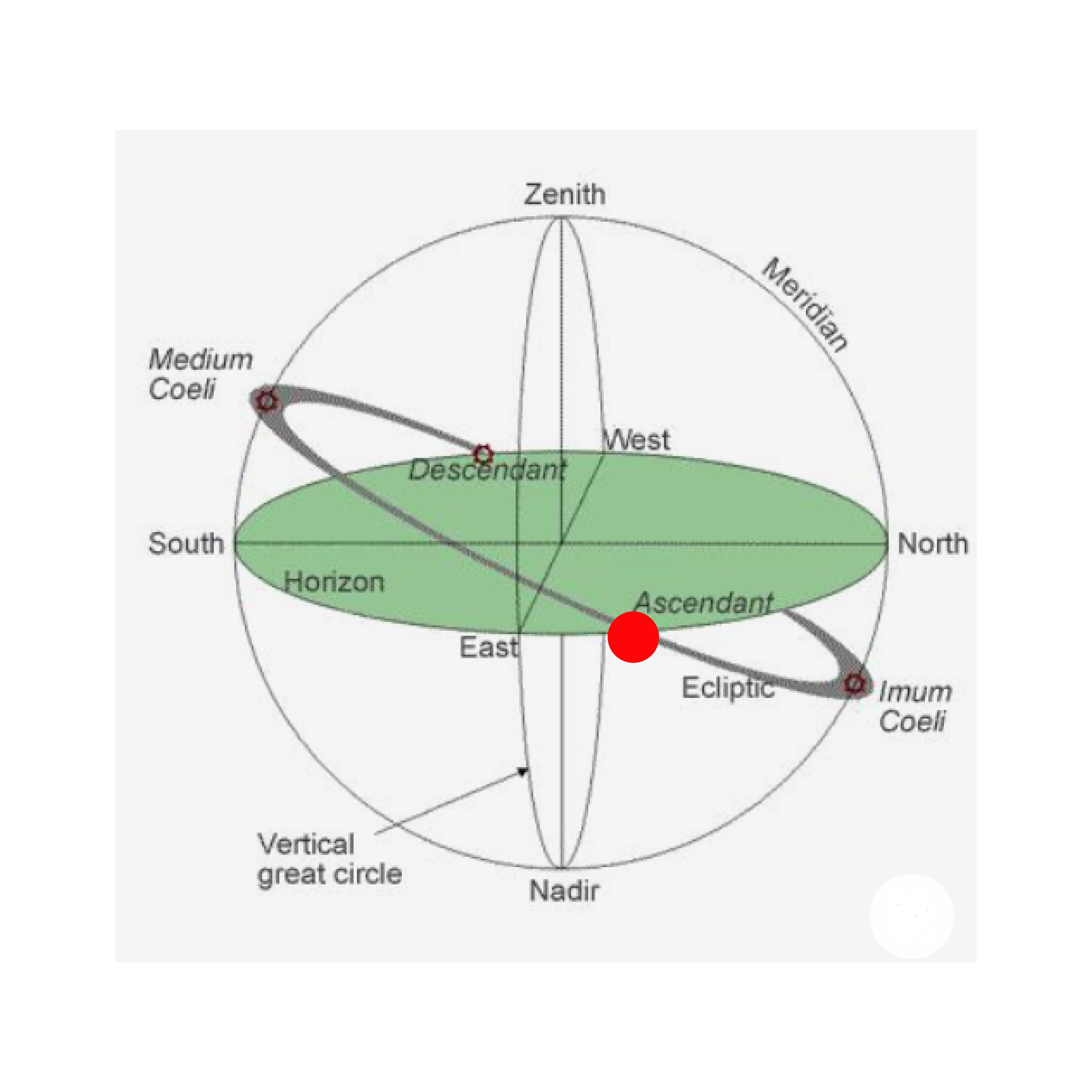 The point where the ecliptic intersects the [eastern] horizon.